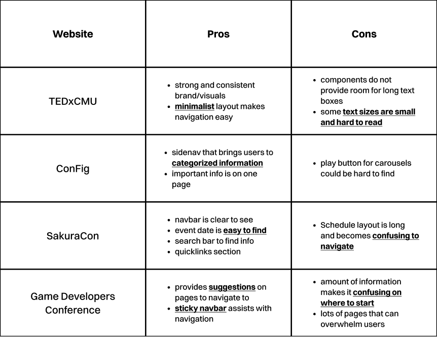 Through competitive analysis, I found that conference websites can easily become cluttered with long amounts of information. This taught me that having supportive navigation tools are imperative in creating intuitive interfaces.