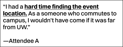 I interviewed attendees from our previous conference and learned what key information made them choose to purchase a ticket. This taught me that displaying this information prominently on our website helps make the decision process quick and easy.